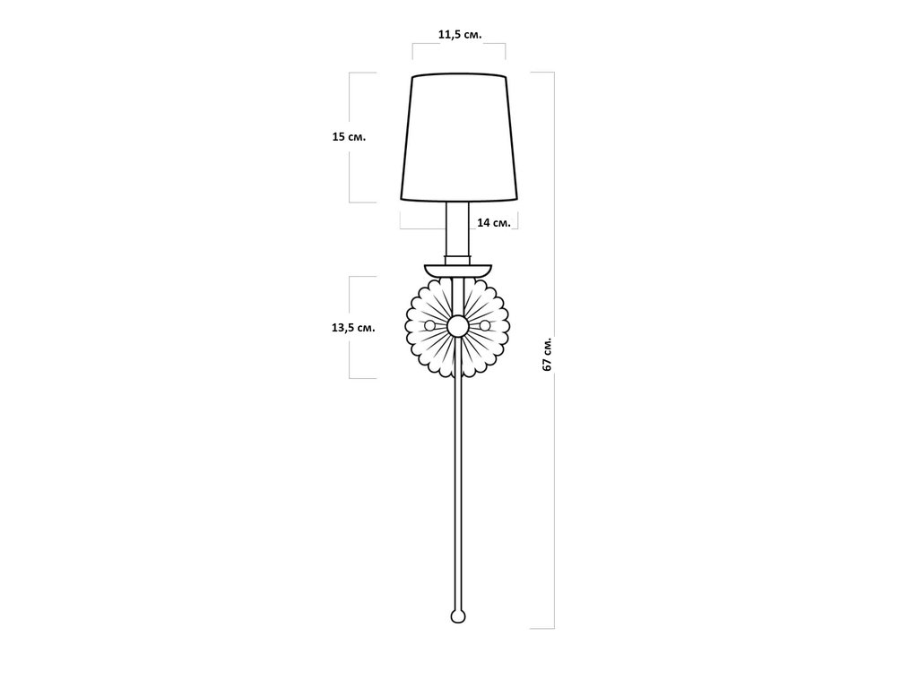 Настенный светильник “Грант” – это элегантное осветительное устройство, которое прекрасно впишется в классический интерьер. Главной особенностью этого светильника является его ребристая круглая розетка, украшенная в состаренном золотом цвете (золотая поталь). Верх канделябра выполнен в виде тающей свечи, которая добавляет атмосферу тепла и уюта. Абажур светильника имеет форму конуса и выполнен в белом цвете. Это создает мягкое и равномерное свечение, что делает его идеальным для создания уютной атмосферы в комнате. Тип цоколя: Е14. Мощность лампы: 40 Вт. Степень защиты: IP20. Комплектация лампочками: Нет. Размер пластины: Ø 13,5 см. Вес: 0,6 кг.