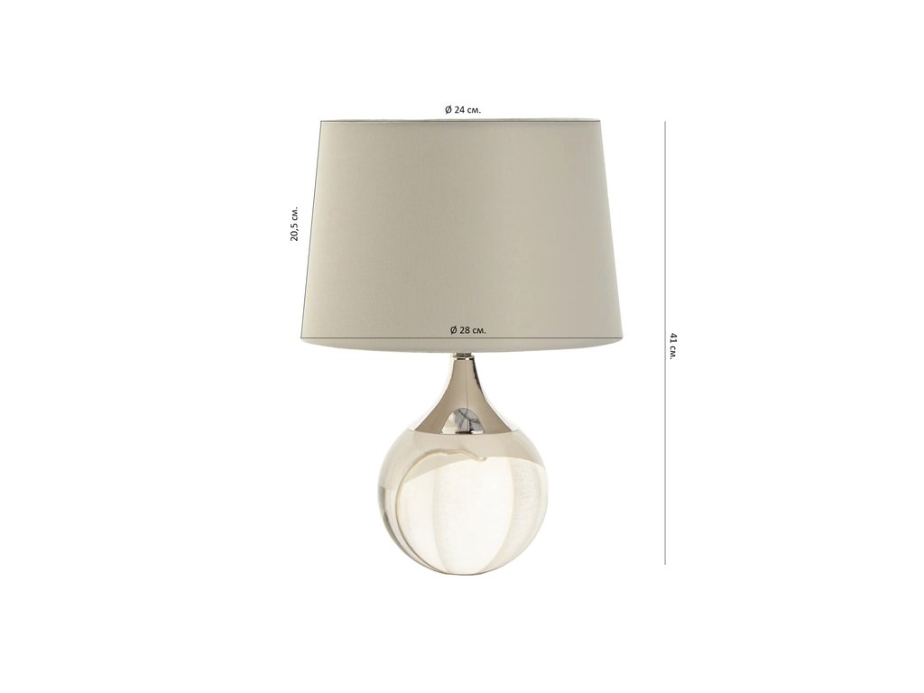 Настольная лампа “Милуоки” окрашена в гладкий хромированный цвет, которые придаёт ей современный и утонченный вид. Основание этой лампы выполнено в форме хрустального полированного шара, что создает эффектное сочетание материалов. Лампа привлечет внимание своим дизайном, и станет настоящим украшением вашего интерьера. Настольная лампа “Милуоки” также оснащена конусным абажуром из высококачественного льна, который подчеркивает ее изысканность и придает комфортный свет. Материал: Фурнитура – Металл.