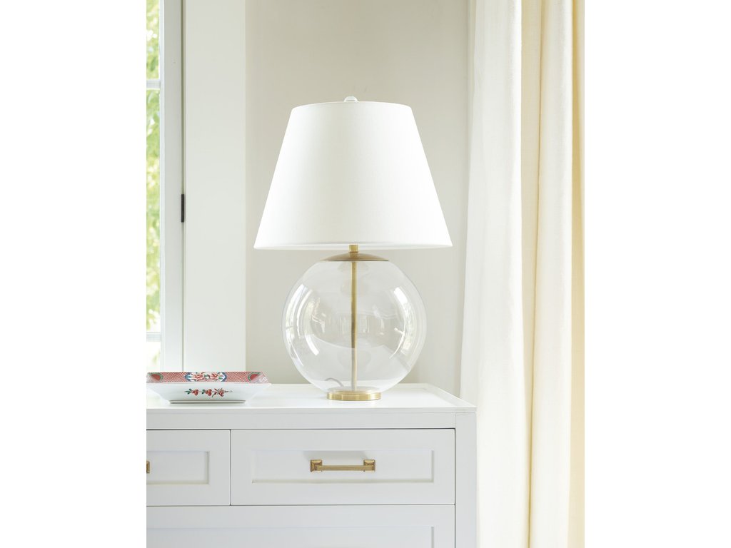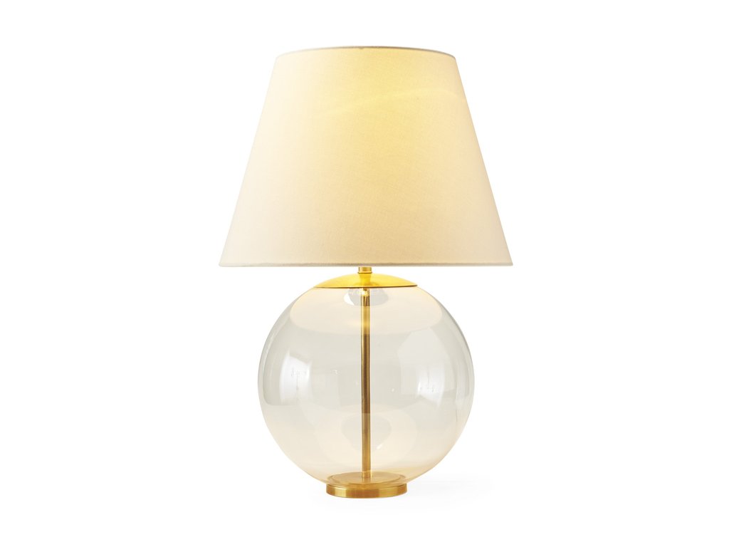 Настольная лампа “Клейтон” – это воплощение оригинальности и изящества. Белый абажур выполнен из плотного хлопкового полотна, которое обладает прекрасной способностью пропускать свет. Это позволяет освещению мягко рассеиваться по комнате, создавая приятную атмосферу. Особенностью этой настольной лампы является необычное основание, выполненное из прочного стекла. Оно имеет форму прозрачного шара на металлической подставке в цветовой гамме латунь. Тип цоколя: E27. Мощность лампы: 40 Вт. Степень защиты: IP20. Длина провода: 1,4 м. Цвет провода: Прозрачный. Расположение переключателя: Провод. Тип переключателя: Вкл. / Выкл. Комплектация лампочками: Нет.