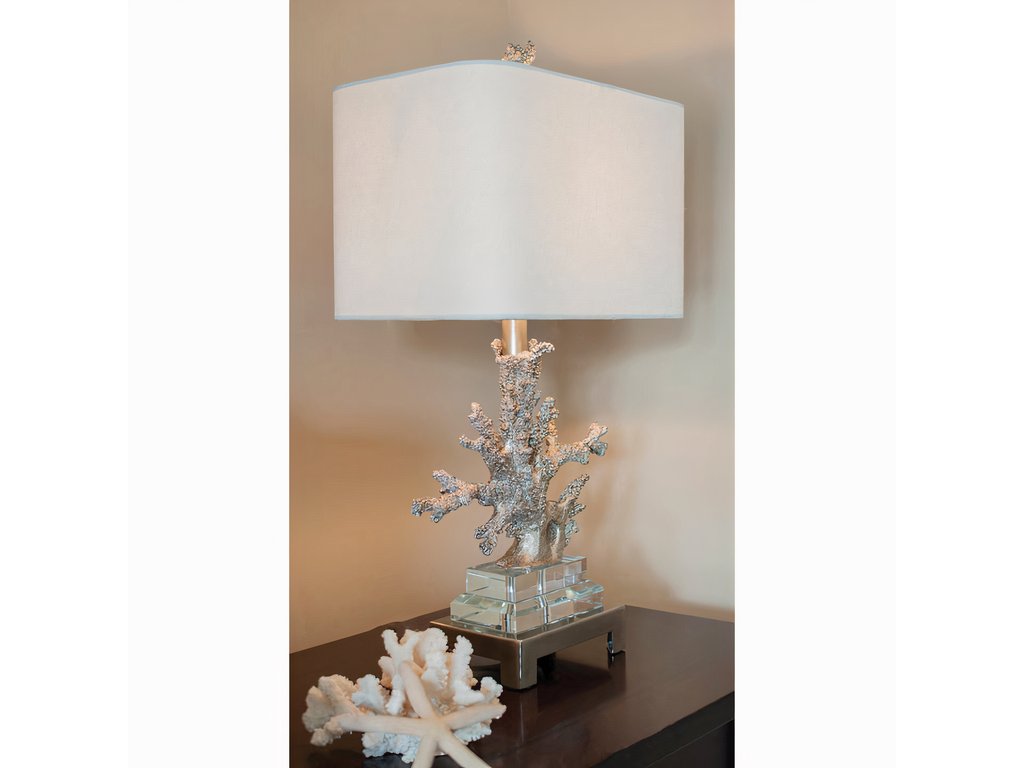 Настольная лампа «Гамильтон» — это воплощение изысканного вкуса и гармоничного сочетания природных форм с современным интерьерным стилем. Основной декоративный элемент лампы представляет собой стилизованную ветвь коралла, отлитую из металла с выразительной фактурой. Поверхность декора покрыта благородным золотисто-шампанским напылением, которое придает изделию легкий блеск и визуальную глубину, делая его настоящим арт-объектом. Основание лампы выполнено из прозрачного акрила, что создаёт эффект легкости и воздушности. Такая конструкция органично смотрится в современных интерьерах и не перегружает пространство. Подставка дополнена устойчивыми металлическими ножками, обеспечивающими надежную фиксацию на поверхности. Абажур лампы изготовлен из высококачественного текстиля белого цвета. Его простая прямоугольная форма удачно контрастирует с динамичной формой кораллового основания, обеспечивая сбалансированный визуальный образ. Свет, проходя через ткань абажура, рассеивается мягко и равномерно, создавая теплую и уютную атмосферу в комнате. Дополнительным акцентом выступает декоративная коралловая фигурка на верхушке абажура, гармонично завершающая композицию. Этот элемент подчеркивает единую стилистическую концепцию и делает дизайн завершённым. Длина провода: 1,4 м. Цвет провода: Прозрачный. Тип переключателя: Вкл. / Выкл. Комплектация лампочками: Нет.