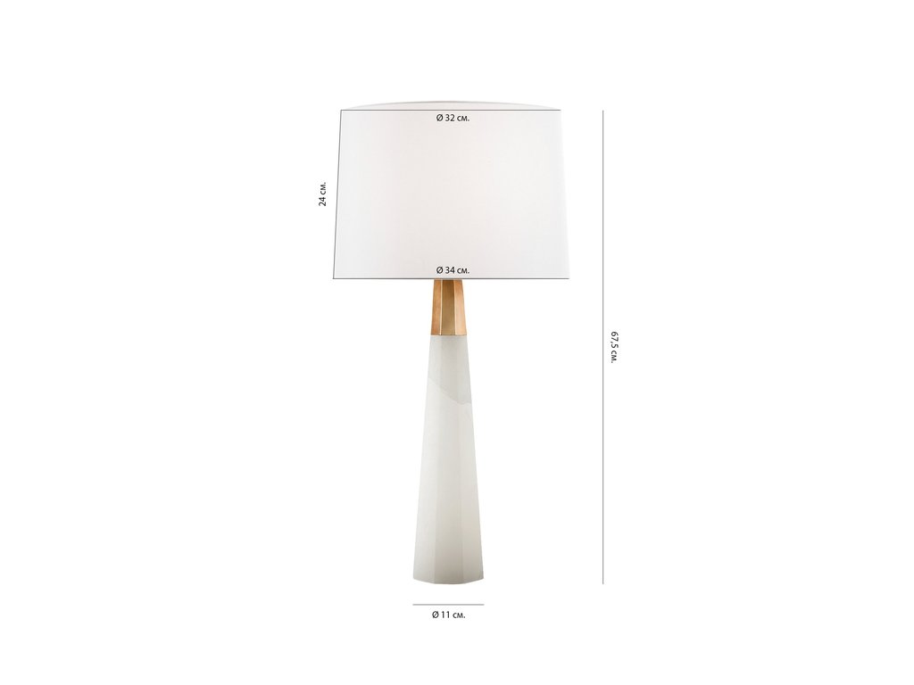 Настольная лампа “Лотта” станет идеальным дополнением для вашего интерьера. Она изготовлена из натурального алебастра, который является нежным и приятным на ощупь. Алебастр имеет естественный, уникальный рисунок, красиво отражающий свет. Благодаря этому, каждая лампа обладает своим собственным уникальным видом. Материал: Основание – Минерал “Алебастр”. Фурнитура – Металл. Абажур – Хлопок. Тип цоколя: E27. Мощность лампы: 60 Вт. Степень защиты: IP20. Длина провода: 1,4 м. Цвет провода: Прозрачный. Расположение переключателя: Провод. Тип переключателя: Вкл. / Выкл. Комплектация лампочками: Нет.