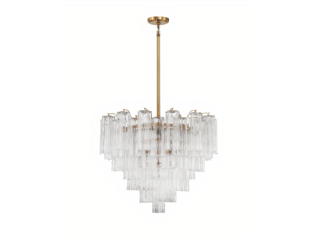 Люстра “Толбот” с прозрачным стеклом, представлена в изысканном металлическом каркасе с покрытием в цветовой гамме латунь, что придает ей стильный и утонченный вид. Уникальный дизайн светильника включает прозрачные ярусы фактурных стеклянных трубок “Трончи”. Доступны различные варианты окраски стекла: прозрачное, янтарное, дымчатое и белое, а также потрясающий осенний оттенок “Autumn“, в котором эффектно сочетаются стеклянные элементы в цветах янтарь, прозрачный. Размеры светильника: 56.5 см. х 66.0 см. х 66.0 см. Мин. – Макс. высота: 62 см. – 152 см. Материалы светильника: Основание – Металл. Плафоны – Стекло. Количество ламп: 12 шт. Вес люстры: 23.5 кг.
